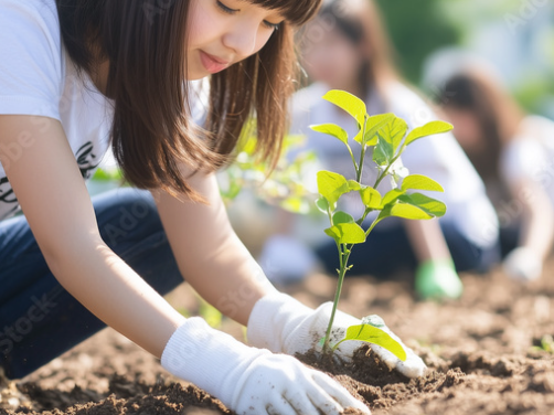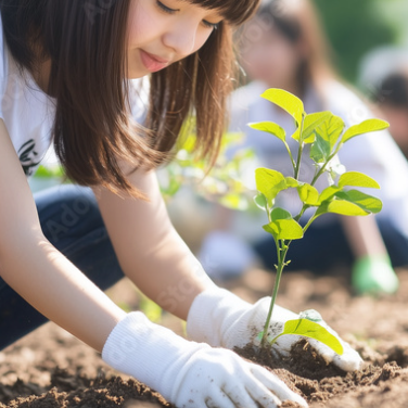 - 自分たちの手で苗木を植える。数十年後の森を作る、壮大なプロジェクトの第一歩。
