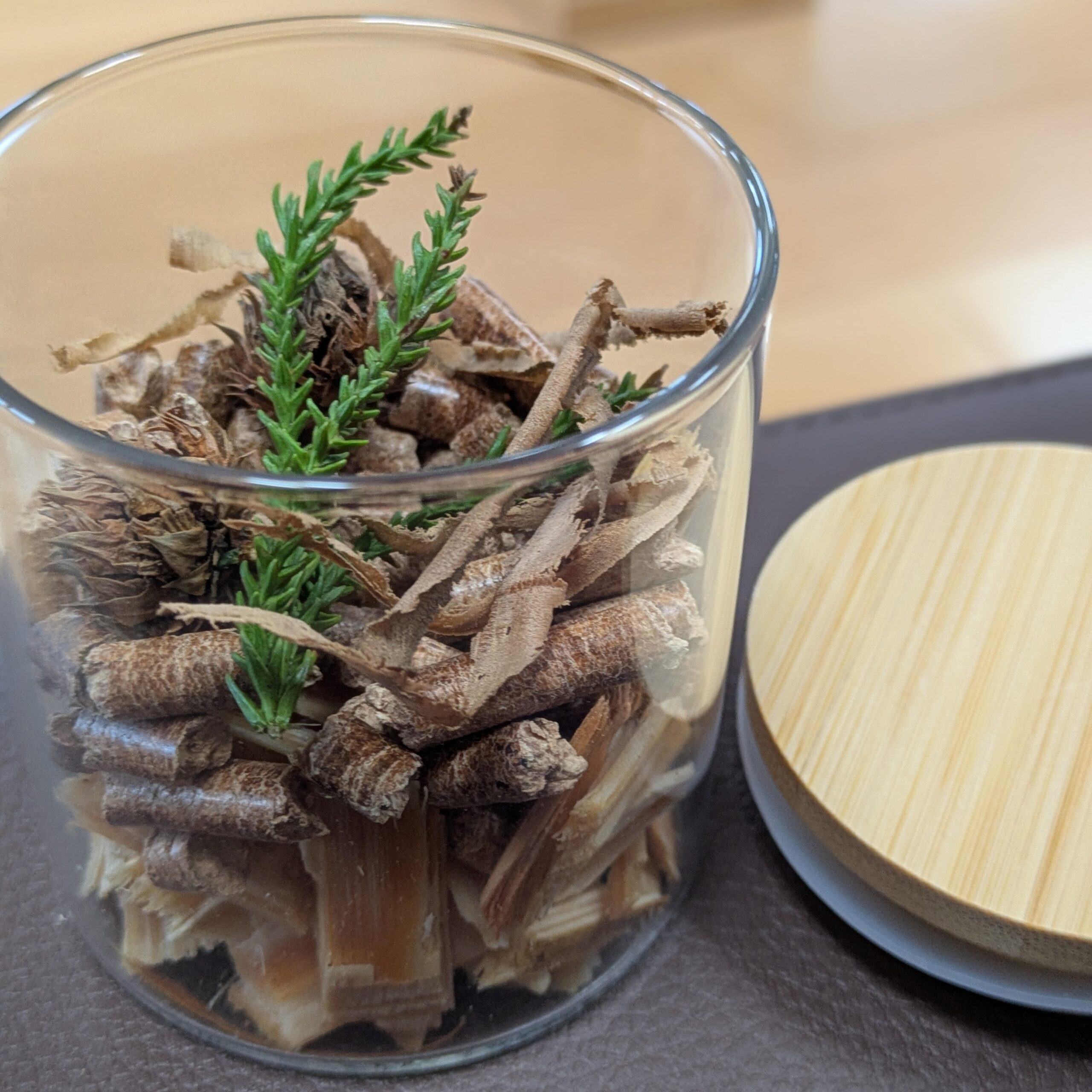 - 栃木県産の杉・ヒノキを使ったワークショップ。作った香りは自宅でも楽しめます。